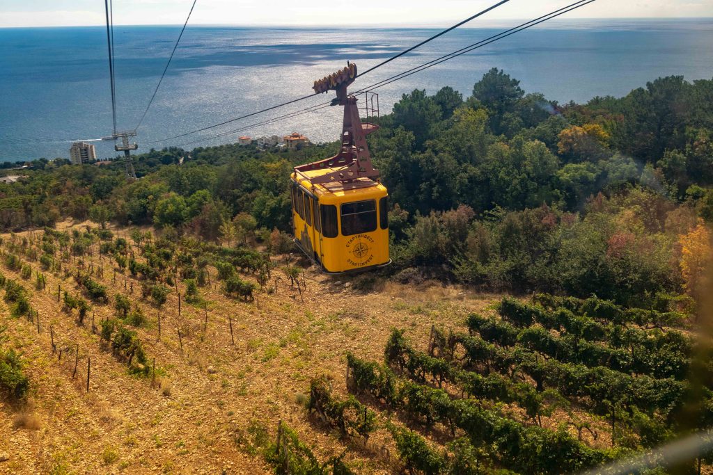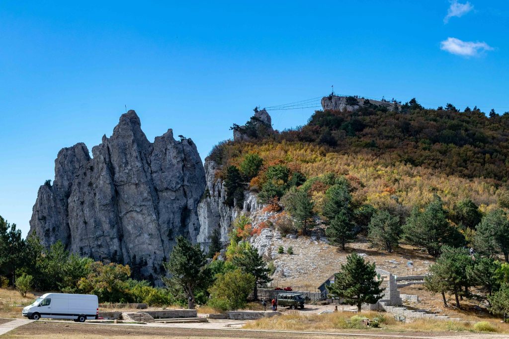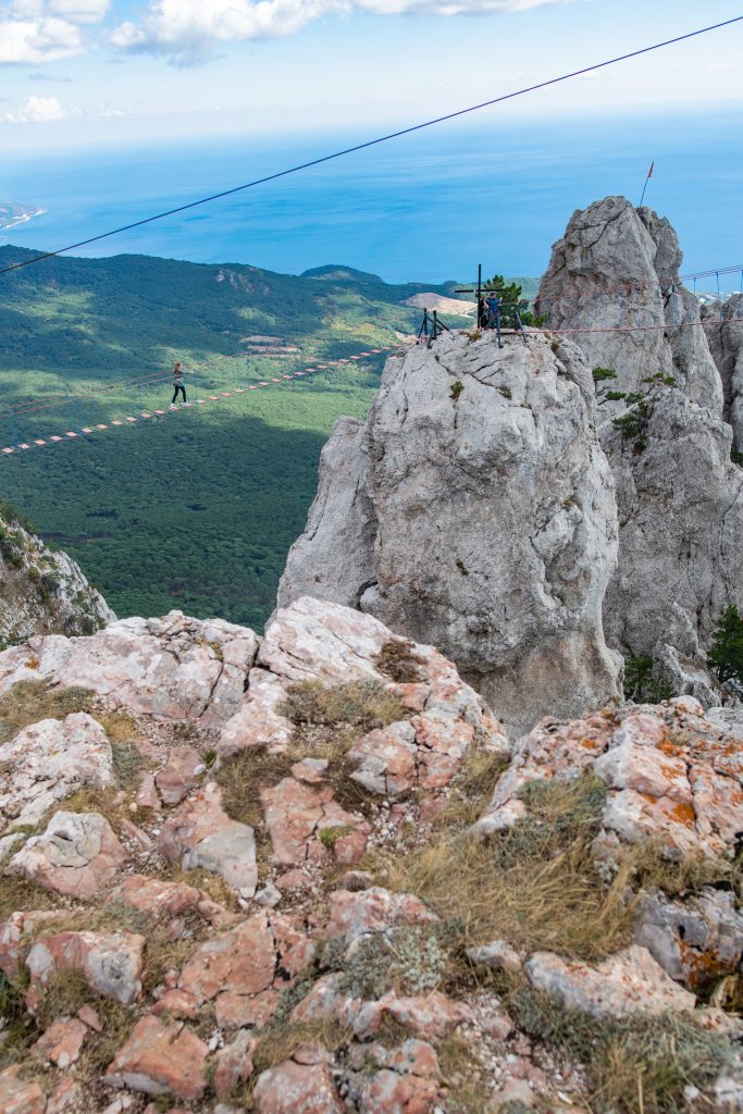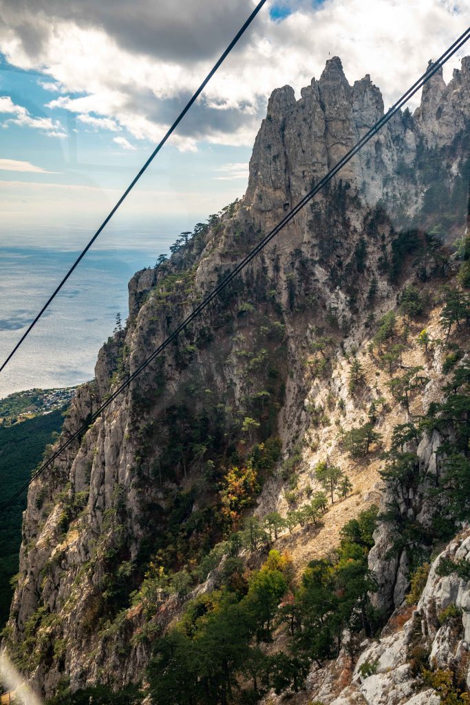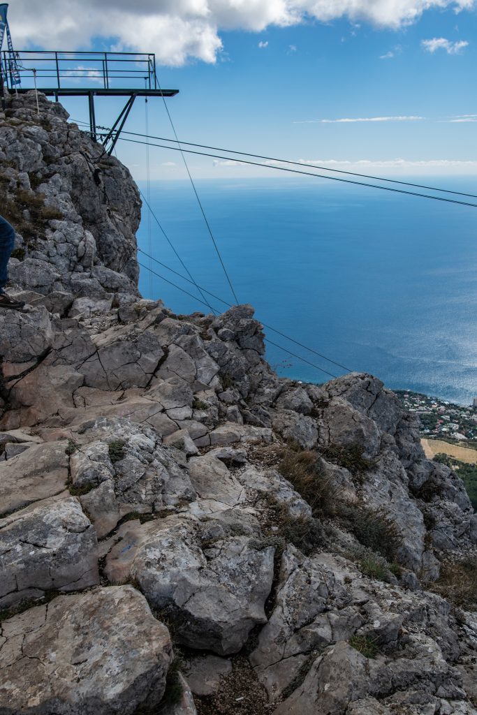 Добраться сюда можно несколькими способами. Самый простой и быстрый — канатная дорога «Мисхор — Ай-Петри». 15 минут — и вы на смотровой площадке. Второй вариант: на машине или микроавтобусе по крутому горному серпантину. Дорога непростая, но очень красивая. Те, кто уверен в своих силах и хоть немного экстремал, поднимаются к вершине пешком по специально оборудованным тропам.