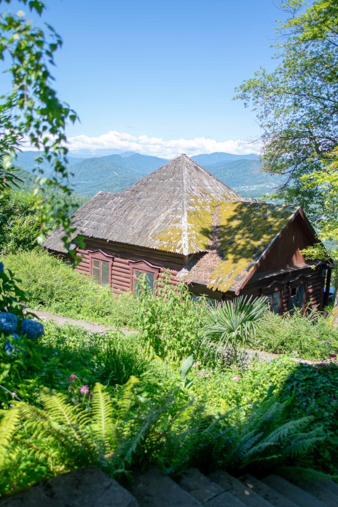 Чайные домики, где есть гостевой дом, музей и зал для чаепития, расположились в красивом и пейзажном месте Сочи. К Чайным домикам ведет дорожка сквозь красивые заросли, а наверху открывается прекрасный вид на море и лесной массив. Горный воздух в этом месте свежий, поскольку нет большого скопления людей и можно почувствовать хвойный аромат.